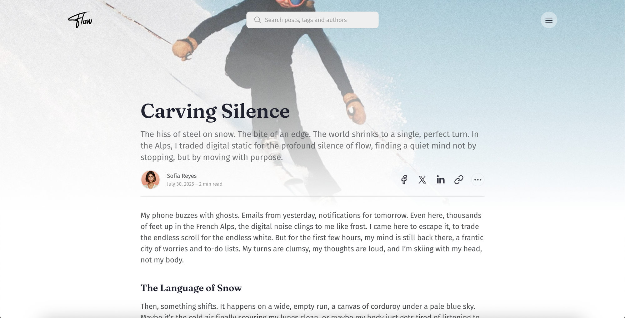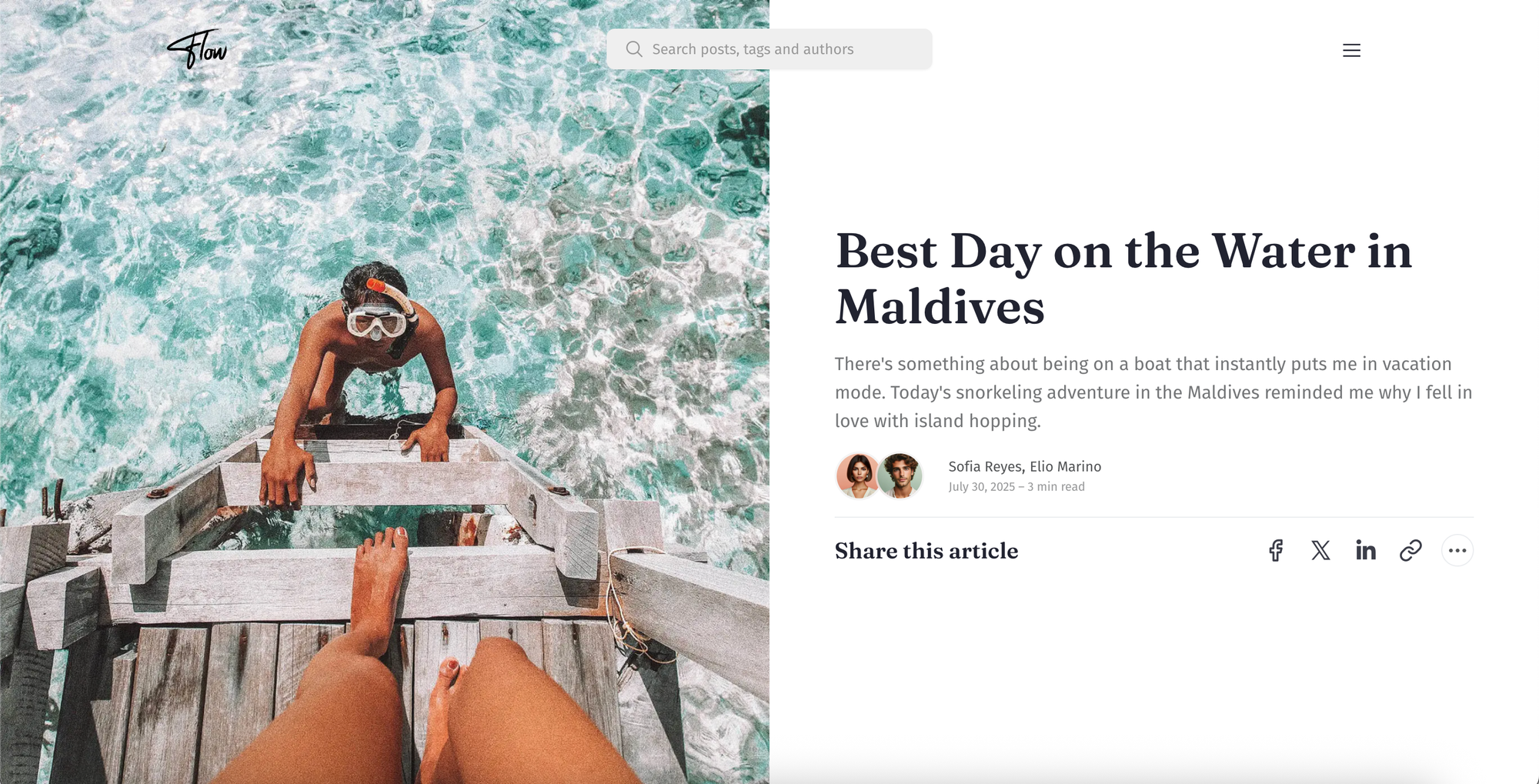 Six unique post layouts including full-screen and gradient overlays. Each layout is designed to give your content the perfect presentation and engage your readers.