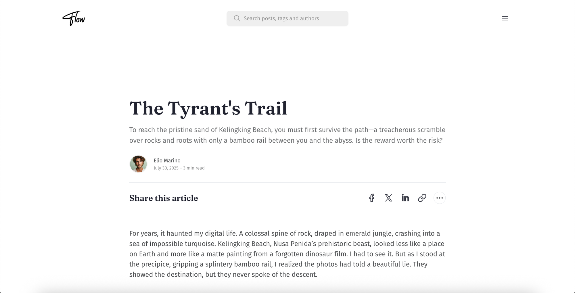 Flow transforms your creative potential with elegant design and creator-focused features that amplify your voice. Concentrate on building your community while Flow perfects the user experience. Perfect for content creators, digital storytellers, and community builders who want sophisticated control over their brand presentation.